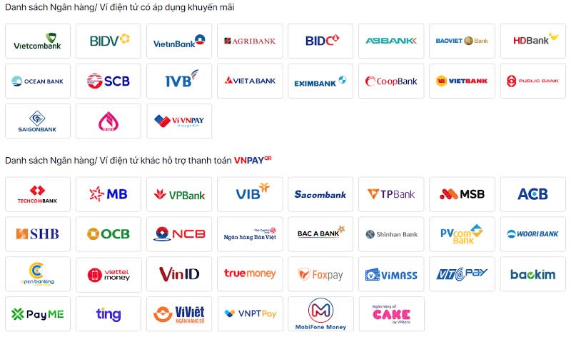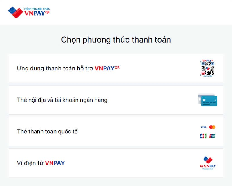 Các phương thức thanh toán qua VNPAY