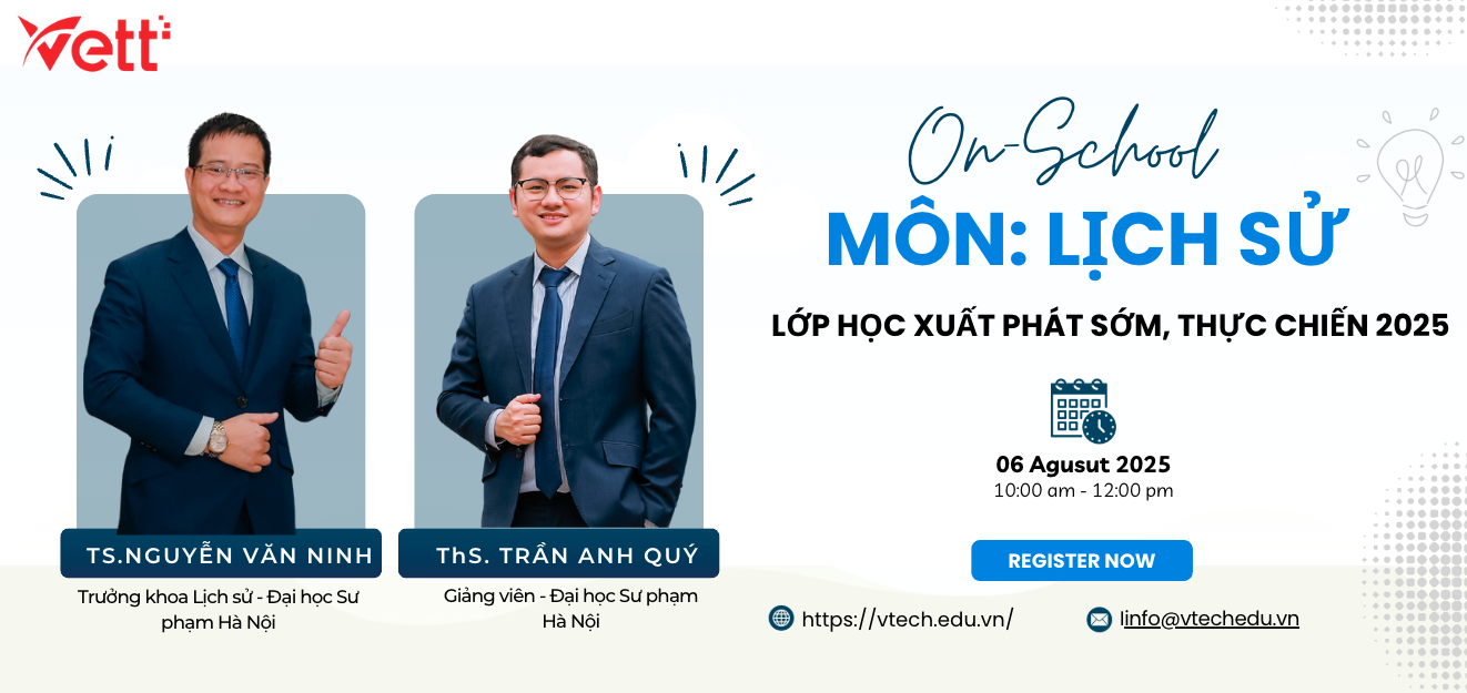 "On-School" là dự án khóa học online được thiết kế bởi đội ngũ VTECH edu dành riêng cho 2K8, giúp học sinh nắm vững kiến thức, luyện đề chuẩn và bứt phá điểm số tại kỳ thi THPT Quốc gia 2026.